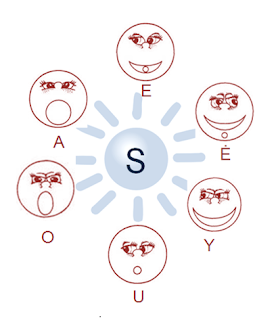 Mokydama balsių tarimo, tikslinimo, naudoju garsų korteles (simbolius). Tai vaikams padeda geriau įsiminti kalbos padargų padėtį, tarimą. Kortelių pagalba skaitome, dainuojame garsų junginius. Vaikai greitai įsimena, savarankiškai gali atlikti užduotis. Kiekviena garso kortelė – simbolis turi savo nuotaiką (tai su vaikais aptariame), pvz: a – linksmas, u – rustus, o – nustebęs, y – besišypsantis, e – susimastęs, ė – rimtas. Balsius tariame ilgai tesiamai (paveiksliukas didesnis); trumpai, tyliai (paveiksliukas mažesnis). Balsių kortelių piešiniai – raudonos spalvos, priebalsių kortelių piešiniai – mėlynos spalvos.